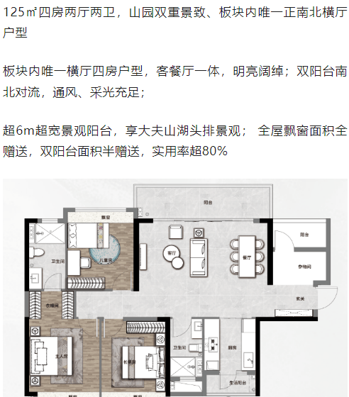 电建洺悦玉府推出的户型面积为105-125㎡,包括三房和四房两种选择。所有户型均采用智能健康精装交付标准,配置全屋新风系统、净水系统等,确保住户享受高质量的生活体验。