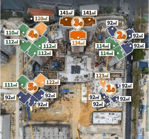项目主推92-141㎡三至五房户型,全部采用全南向设计,确保每个房间都能享受到良好的采光和通风。其中,小户型适合刚需家庭,大户型则更适合改善型需求。所有户型均以高使用率为卖点,最大使用率可达118%。