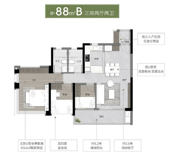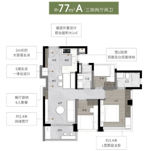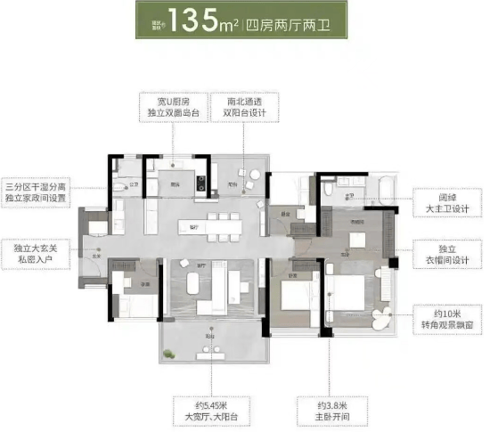 主推建面约 77 - 135㎡三至四房,作为南站万博首个新规产品,实用率超 120%,最高约 138%。户型设计多样,满足不同家庭需求。部分阳台开间超 7 米,如约 88㎡A 户型可变双开间宽阳台;约 103㎡户型可变 270° 瞰景阳台。通过 300 多户客户调研,打造 14 种变异户型,实现 “量身定制”。装修选材高端,99 项精选定制板材,如珍贵的雀眼木、鸡翅木,以及高档岩板、超白玻璃等,全屋隐藏式中央空调交付,还配备方太厨房三件套、智能马桶等高配交标,更有 120 处魔鬼精工细节,提升居家质感。