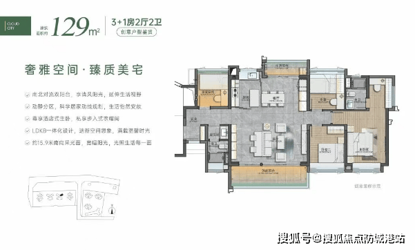主力户型【89-125㎡】三至四房,全南向设计,采光通风极佳。