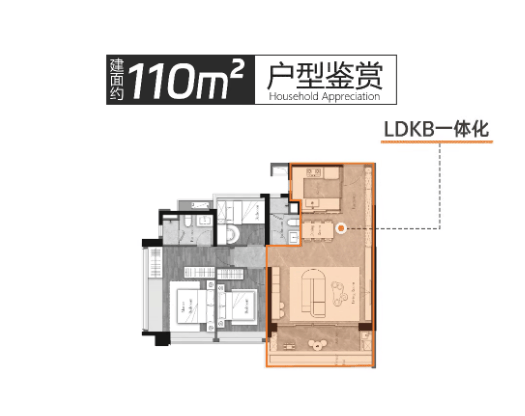 建面约110m²户型:可改四房设计,全开间朝南,约11.3米南向采光面,采光通风极佳;百变灵动空间,赋能更多生活想象,LDK客餐厨一体化设计,定制温馨家庭互动场景,空间利用率高,适配刚需改善家庭。