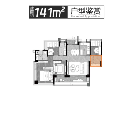 建面约141m²户型:3房+2厅2卫+灵动空间,全明多开间朝南,约14.6米IMAX采光视野,搭配约8.3米景观大阳台,可尽揽滨水美景,解放多重生活享受;主卧端厅设计,270°全景采光,私密性与舒适度兼具,适配改善型家庭。