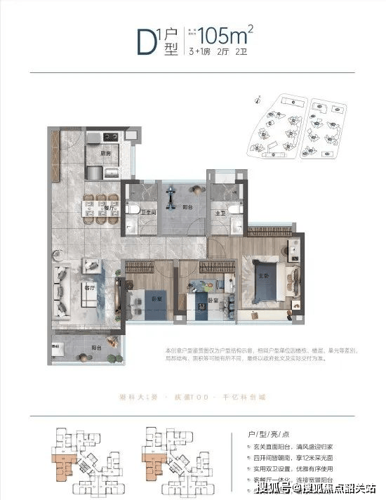 亮点:总价305万元,首付91.5万元,满足三代同堂需求。