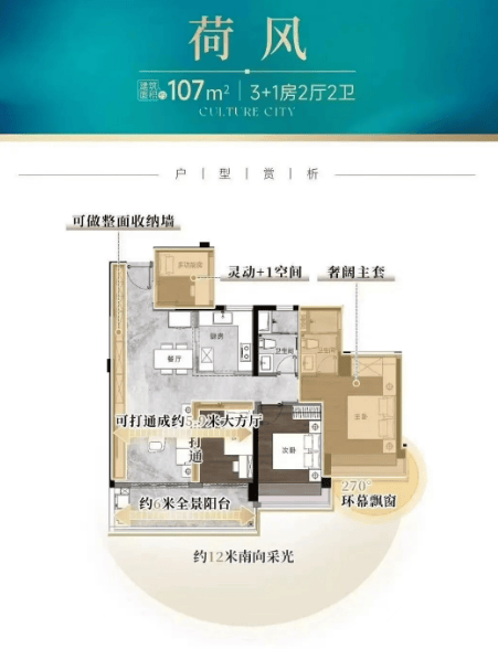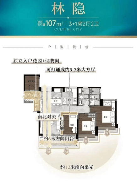 中鼎书院上城·珺翎府主推建面约107-181平方米的纯改善四房户型,使用率最低超110%,最高可达到120%。项目在户型设计上注重空间平权和隐私呵护,确保每个房间都能享有充足的采光和通风条件。例如,建面约107平方米的四房户型拥有12米南向采光面,通透LDK一体化设计;建面约181平方米的大平层则堪称“终极改善”范本,拥有近16平方米的全景阳台,带来极致的观景体验。