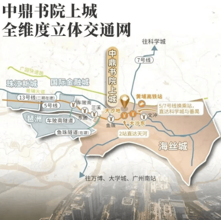 项目坐落于广州第二CBD的核心区域,距离地铁5号线大沙地站仅约600米,步行即可轻松到达。通过地铁出行,两站可达三溪,无换乘直达金融城与珠江新城,极大提升了通勤的便捷性。此外,项目周边有广园快速和黄埔大道两条主要快速路,自驾出行同样方便快捷,不堵车情况下,去往市中心只需约30分钟。