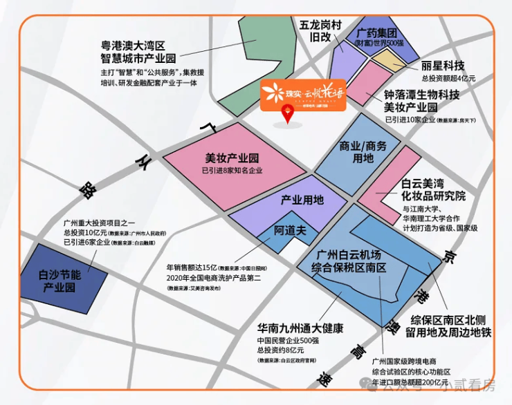 2城轨:广佛环线(预计2023年通车)4站直达天河智慧城,5站到金融城,6站到琶洲(预计2023年通车),新白广城轨(预计2023年通车)1站直达白云机场。