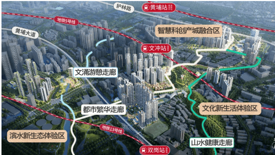 项目位于老黄埔核心区域,与华润新溪旧改、万科城市之光连成一片开发,未来将受益于珠金琶、鱼珠 CBD 一体化发展。文元组团作为首开区,交通极为便利,距 13 号线双岗地铁站约 300 米,5 号线文冲地铁站步行约 500 米,3 站可达金融城,6 站到琶洲,9 站直达珠江新城,且临近双岗 BRT。此外,周边城市主动脉和城际交通线路密集,可快速连通珠金琶 CBD 核心区域以及大湾区其他城市。