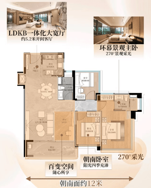 使用率高达约120%,阳台占比降低至20%,实现“零飘窗”设计。