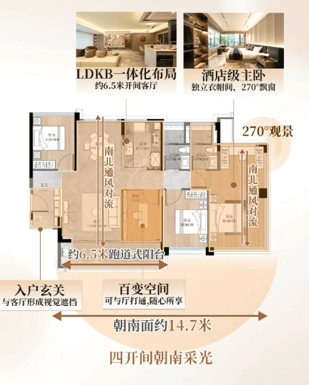 117㎡稀缺新品:专梯专户,五开间朝南,约17.5米南向巨幅面宽,南北通透。
