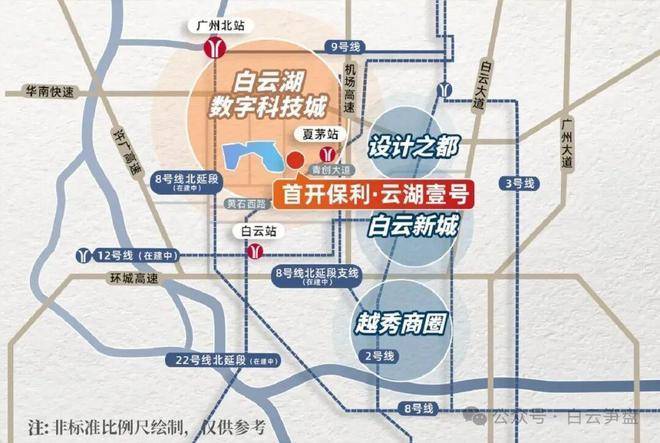 产业价值的另一层逻辑,是交通系统的快速迭代能力。白云湖数字科技城规划中,轨道交通系统成为核心骨架。未来规划中将有多条地铁及城际线路交汇,22号线与24号线夏茅站距离项目约750米。城市轨道交通的价值不仅体现在通勤效率,更重要的是对城市人口流动结构的改变。轨道站点通常会形成TOD复合商业生态,从而提升区域土地价值密度。首开保利云湖壹号正是依托这种交通红利,构建起面向白云新城、棠溪交通枢纽、广州南站交通网络的多维出行路径。