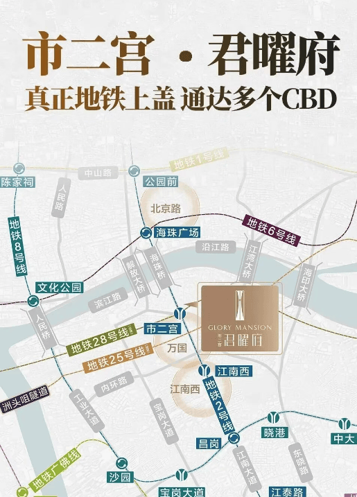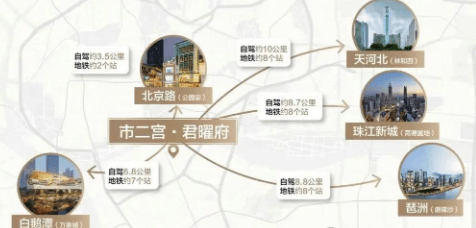 地铁:君曜府位于地铁2号线和规划中的28号线(佛穗莞城际)交汇点市二宫站上盖,距离地铁站不到200米,出行极为便利。
