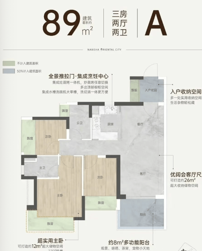 89㎡三房两厅一卫:动静分区,空间利用率高,二胎家庭首选!