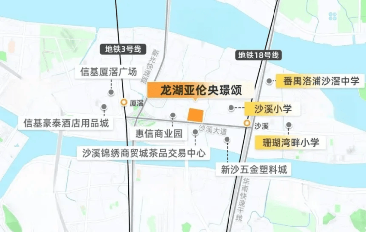 交通是板块价值的核心驱动力,而龙湖亚伦央璟颂的交通优势堪称 “王者级别”。项目距离地铁 18 号线沙溪站仅约 700 米,步行 10 分钟即可抵达,作为广州公认的 “最快地铁”,18 号线设计时速达 160 公里,堪称 “通勤神器”。