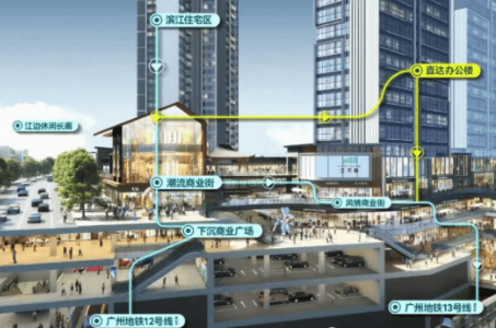 白云站枢纽:距离项目2.7公里,亚洲最大的城市交通枢纽之一,包含高铁、普铁、城际及地铁等多种交通方式,同时配备6万平方米的商业设施。