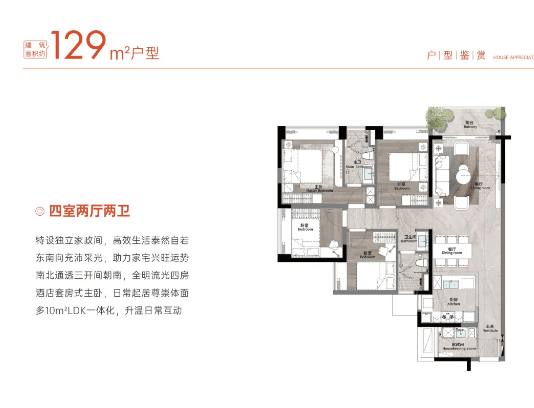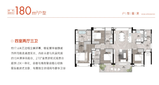 珠江天郦的户型设计以改善型为主,首推的 125㎡-180㎡四房户型,符合当下主流的改善型居住需求,兼顾了舒适性与实用性。在装修配置上,项目尽显高端品质,甄选大金、唯宝、德格等知名品牌,部分装修与香格里拉酒店同款,投入数十万进行奢装。厨房配备 Teka 德格欧洲高端嵌入式厨电,包括壁挂式吸油烟机、燃气灶、半嵌入式洗碗机、双开门冰箱、蒸烤一体机等,还设有高端全屋净化系统、厨余垃圾处理器以及整块进口天然石材台面。卫浴方面采用德国唯宝百年高端卫浴品牌的智能马桶、浴缸,主卫配备电热毛巾架(180 方长辈套房同样配备),同时还有专业全屋定制的卫浴收纳镜柜和台盆柜。全屋配备新风系统、大金中央空调,还设计了步入式衣帽间衣柜、家政柜、备用鞋柜以及带有烘干功能的电动晾衣架,全方位提升业主居住体验。