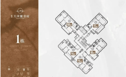 近期加推14栋(26层,2梯5户,80–93㎡),交付时间稍晚(2028年底),但给了更多选择。主力户型80–132㎡,得房率超110%,部分四房总价仅328万起,在天河实属罕见。