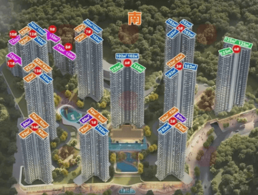 项目主推80–132㎡二至四房,全部全南向设计,实用率高: