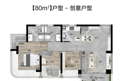 80–93㎡三房:适合单身或小夫妻,主卧带飘窗,客厅开间超3.6米,紧凑但不压抑;
