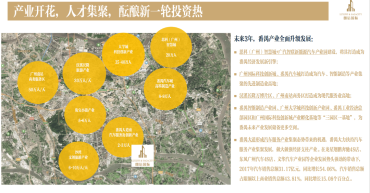 朗信国际所处位置被定位为世界级“双中心”区位,未来五年内将实现快速发展。根据规划,番禺广场将成为一个比肩万博商圈的新地标,拥有260米高的标志性建筑和五层地下空间,总面积达20万平方米。此外,广州首批高速地铁线17、18、22号线在此交汇,形成了便捷的交通网络,覆盖了包括天河在内的多个核心商务区。