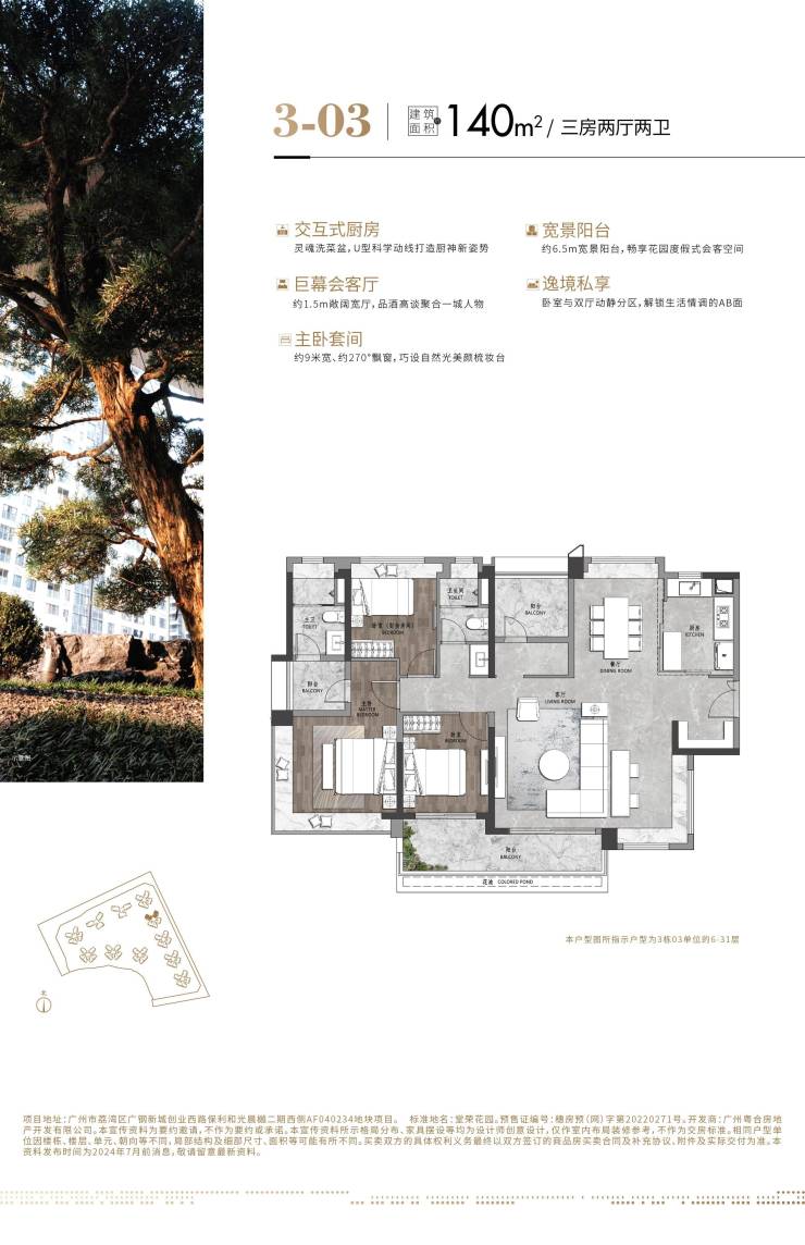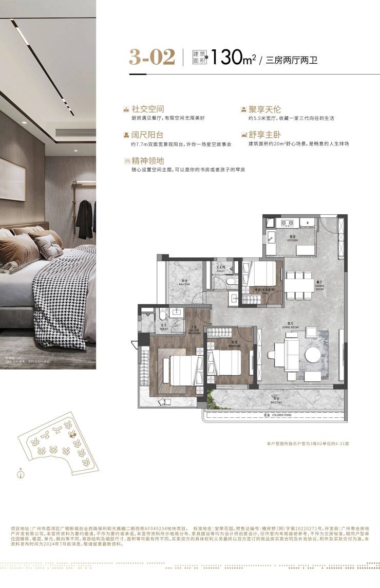 一、本宣传资料中所述的项目规划、配套设施、交通、教育、商业等信息,均为截止至2026年4月14日的最新信息,仅供购房客户参考,不构成开发商的任何承诺,具体以实际交付及政府最终批复为准。其中,广钢中央公园、快捷路二期等配套设施的建设进度、完工时间等,以政府相关部门及建设单位的官方通知为准;地铁线路及站点信息,以地铁运营公司的官方发布为准。
