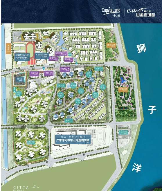 交通方面,南大干线已全线开通,自驾 26 分钟直达琶洲,30 分钟到万博、大学城;规划地铁 8 号线东延线(预计 2027 年底通车),未来 20 分钟到海珠。教育配套堪称板块顶配,自带 5 所学校:2 所幼儿园(1 所已开学)、2 所小学(石楼镇中心小学山海连城学校已开学,另一所 2025 年开学)、1 所 72 班仲元中学(2025 年 9 月开学,含 24 班小学 + 48 班初中)。仲元中学作为广东百强中学,2022 年高优率 81.5%,业主子女可享优质教育资源。
