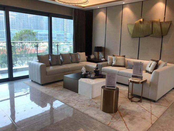 客厅约5.1米开间,隔着屏幕也感觉到阔绰舒适。双套间设计,跟五星级酒店有得一拼~