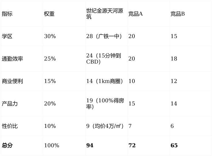 竞品对比:与某竞品相比,本项目学区更优、户型更大、价格更低;
