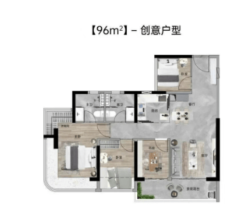 项目目前在售户型包括80㎡三房两卫、92㎡四房两厅、96㎡四房两厅、100㎡四房两厅以及125㎡四房两厅等多种选择。所有户型均采用全南向设计,实用率超过110%,部分户型还享有直接看山景或花园景观的优势。特别是92㎡四房两厅户型,总价仅328万起,性价比极高。