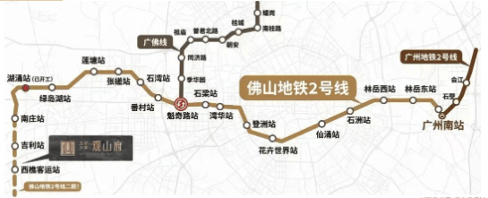 正荣力高观山府地理位置优越,紧邻规划中的佛山地铁2号线西樵客运站,距离仅约200米,未来交通便利性将进一步提升。此外,“三横三纵”立体路网使得驾车出行非常方便,可以快速到达南庄、禅城季华路商圈、千灯湖等地,实现无缝接驳广州南站。