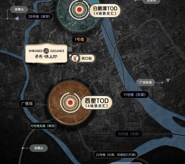 白鹅潭TOD枢纽:2站地铁直达,汇聚广佛江珠城际、广州地铁11号线等5条轨道线路。