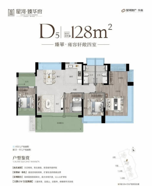 臻華·建面约128㎡雍容轩敞四室:专为进阶人生打造,灵性空间更懂品质需求。约100%使用率搭配迎宾入户花园,入户即见绿意,提升了归家仪式感,同时入户花园可改造为休闲区或收纳区,实用性与美观度兼具。宽幕景观阳台设计,视野开阔,可俯瞰社区园林与远山美景;主卧配备270°瞰景飘窗,搭配独立卫浴与衣帽间,打造专属私密空间,彰显雍容气度。