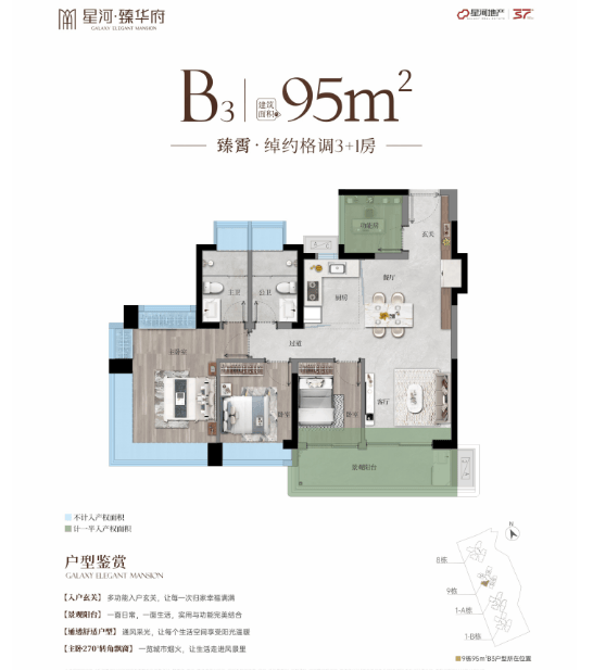 物业公司为星河智善物业,具备丰富的高端社区管理经验,物业费标准为3.1元/㎡·月,将为业主提供全方位、精细化的物业服务,守护社区日常运营与居住品质。项目梯户比为2梯4户、2梯5户,合理的配比可减少早晚高峰电梯等待时间,保障业主出行效率与居住隐私。