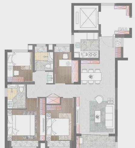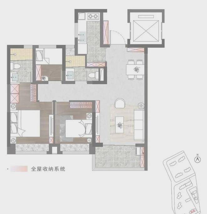 108㎡四房两卫,适合改善一族,同样专厅入户,电梯前室加门内阳光玄关,安全私密。采光通风超强,全屋精细化收纳,赠送玄关柜。