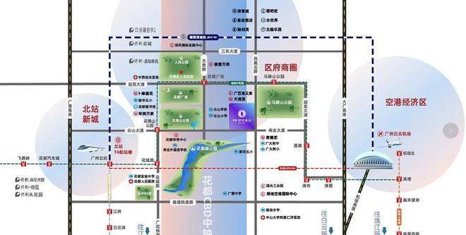 地段更是没得说,位于花都区府中心,是凤凰北路压轴住宅用地,5 年来唯一入市的全新住宅盘,稀缺性拉满。项目在区府中轴线上,坐享 2500 亿升值红利,还受空港经济区和广州北站双重辐射。