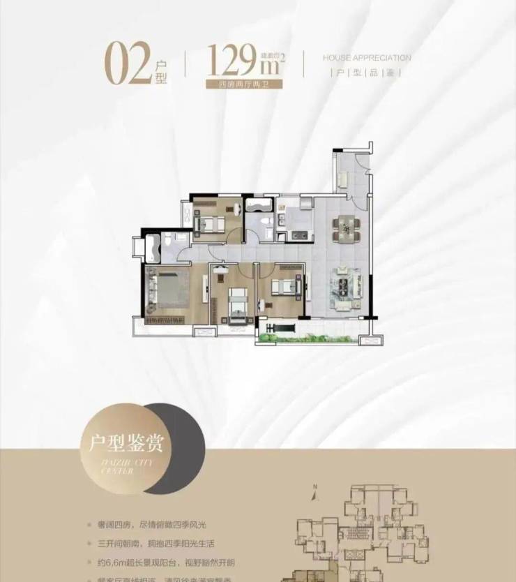 户型:建面约 75 - 129㎡,5 种户型均有实体样板间。