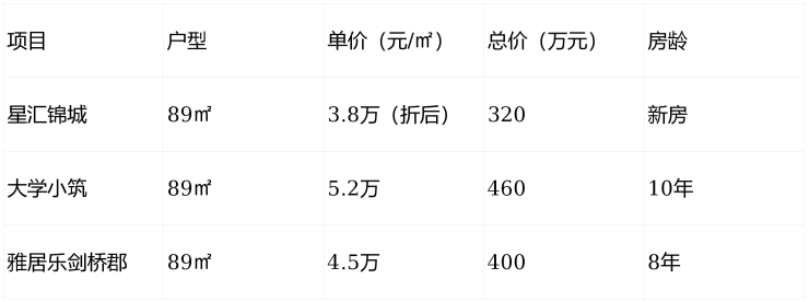 价格倒挂:项目周边二手房(如大学小筑)挂牌价超5万元/㎡,星汇锦城新房价仅3.8万元/㎡(折后)。