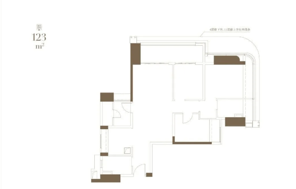 低区(4-11层):主推建筑面积约108至123平方米的三四房。