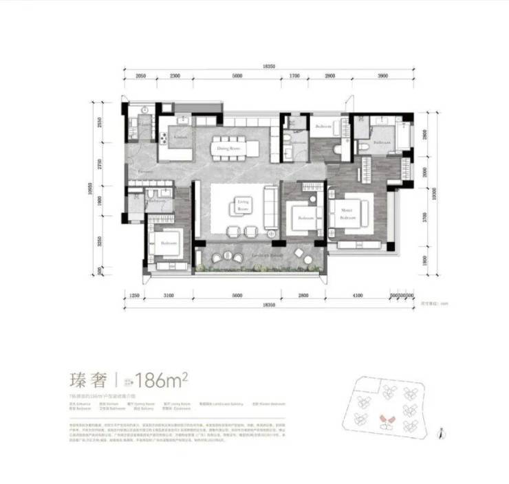 最后是186平方米四房,这款户型是改善型家庭的首选,适合追求高品质居住体验的大家庭。户型南向面宽达14米,7.2米长大阳台连通客厅和次卧,采光和视野效果出色,站在阳台上,能俯瞰滨水公园的美景,视野开阔,心情也会变得舒畅。户型设置双套房设计,长辈房位于入户处,保证了居住私密性,长辈住在这里,既能方便进出,又不会打扰到其他家人,非常贴心。
