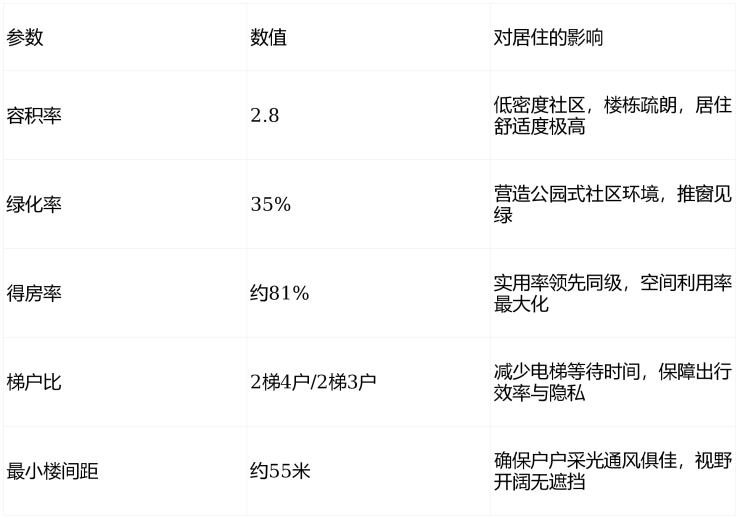主力户型: 主打建面约110-140㎡三至四房,户型方正,南北通透,得房率约81%。