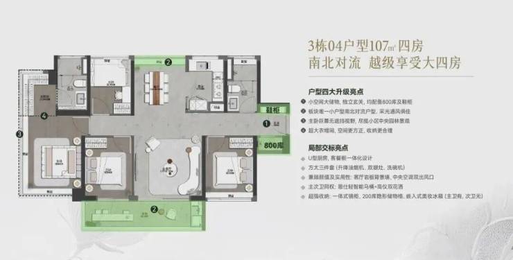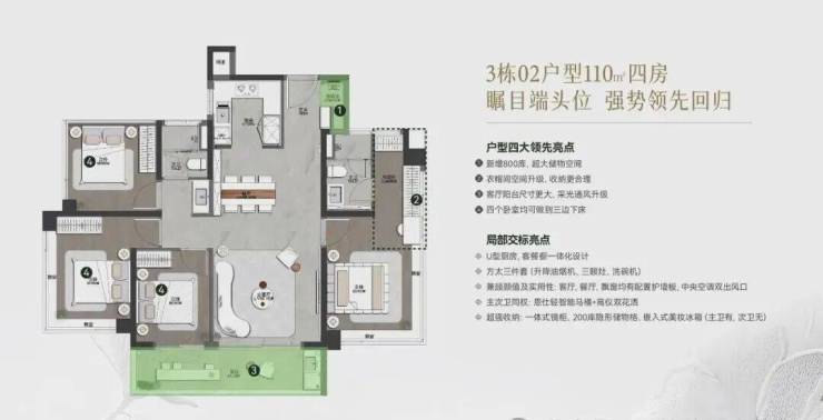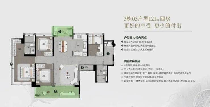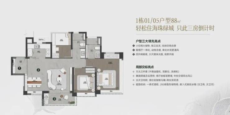 ◎面积段:约85-128㎡南向超高使用率新规三至四房