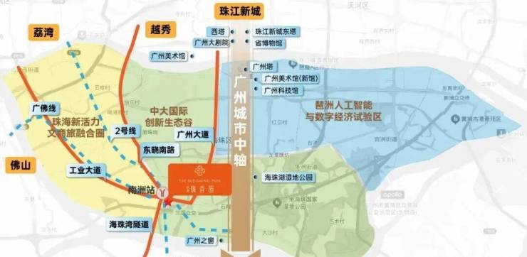 “琶洲数字经济区、文商旅融合圈、中大创新谷”三大产业板块环伺