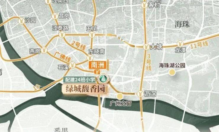 2, 与2号线、广佛线南洲地铁站相连,4站可达万博商圈,5站直达珠城,7站可至琶洲,未来项目自带地库与地铁站直通设计,交通十分便捷。