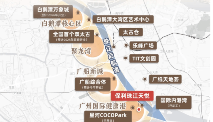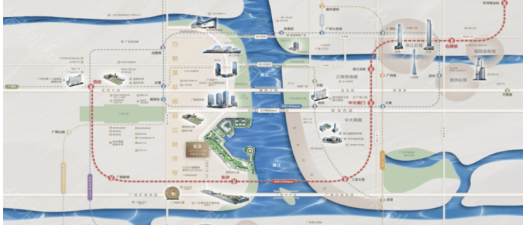 保利珠江天悦位于白鹅潭商务区东南角,紧邻珠江后航道一线,周边地块包括广船片区、东塱村及平洲水道,西接广钢新城。区域发展潜力巨大,城市更新与高端产业布局同步推进,形成多维度生活、商业及文化配套。未来东沙片区将打造健康产业集群和滨水休闲湾区,形成集居住、商业、医疗、教育、娱乐于一体的综合功能城区。项目毗邻地铁10号线东沙站,在建地铁10号线、11号线及22号线进一步提升通达性。作为未来城市核心滨水区域,白鹅潭片区在商业、教育和交通资源方面具备长远增值潜力,为投资者和改善型家庭提供可观价值保障。
