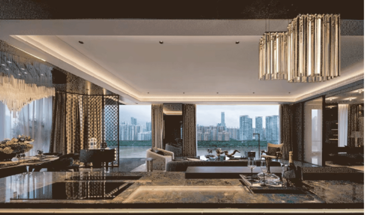 此外,作为由崔愷院士执笔的作品,【力迅·琶洲湾】的建筑立面也极具特色。波浪形的外立面设计不仅赋予了建筑灵动的艺术美感,更在功能上实现了采光与遮阳的完美平衡。每一户的窗户都像是镶嵌在艺术雕塑上的宝石,随着光影的变化呈现出不同的质感。项目虽然户数少,但在公共空间的打造上却毫不吝啬。每层楼的电梯厅都经过了精心雕琢,形成了私属的入户礼仪空间。这种对细节的极致追求,体现在每一个转角、每一处收口之中。对于追求极致生活品质的精英阶层来说,【力迅·琶洲湾】提供的不仅仅是一个居住的容器,更是一个能够安放身心、激发灵感的艺术殿堂。在这里,空间不再是冰冷的物理存在,而是有了温度和灵魂,它与珠江的波涛共振,与城市的脉搏同频,为业主呈现出一幅幅流动的 living art(生活艺术)画卷。