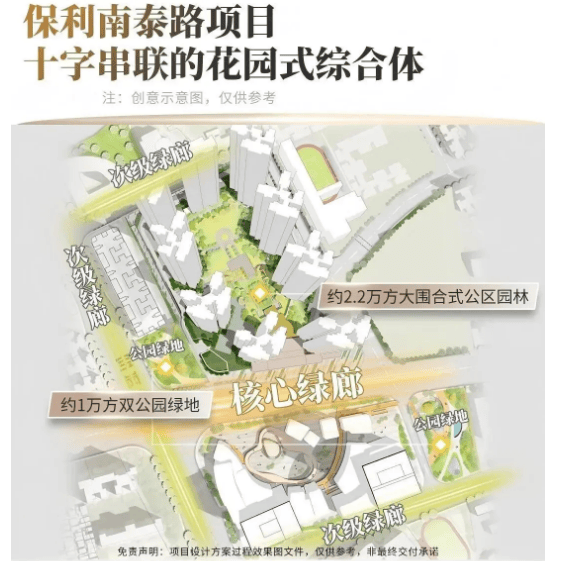 作为深耕广州多年的品牌房企,保利始终秉持“城市共生者”的理念,在地块开发中坚持“尊重土地、适配需求、迭代产品”的设计核心。针对南泰路地块,保利以“缝合城市空间,打造花园综合体”为设计理念,通过十字中轴规划,串联社区绿地、商业、学校等配套,构建微型花园城市生态,让繁华与自然无缝融合。
