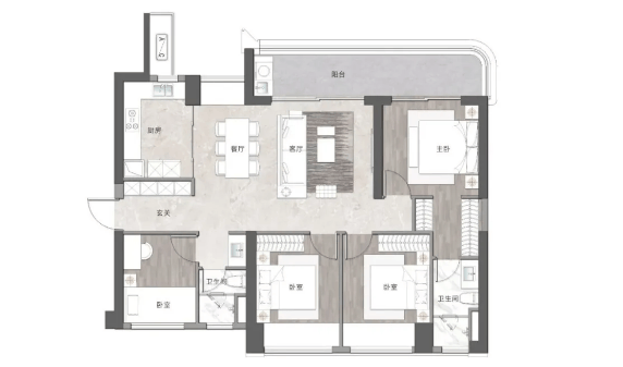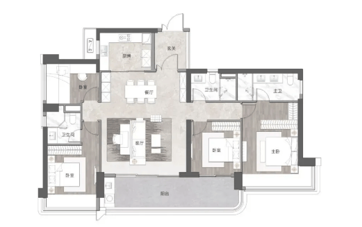 项目主打 110-245㎡三至四房户型,得房率 85%,适配从改善到终极置业的全需求。110-130㎡三房为改善入门款,户型方正实用,部分配备景观阳台,可眺望江海或社区景致,满足三口之家舒适居住;165-185㎡四房为高端改善主力,采用 LDKG 一体化设计,双阳台 + 大面宽布局,采光通风优越,主次卧分区合理,私密性强;245㎡大平层为终极置业之选,打造双主套、跑道阳台,270° 环幕视野无遮挡,直面三江交汇盛景,主卧配备独立衣帽间与卫浴,居住舒适度拉满,充分契合高净值人群对空间与景观的极致需求。