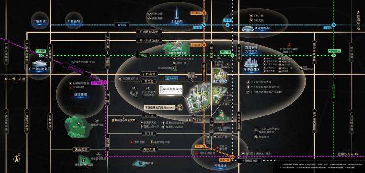 从宏观路网来看,项目所在区域拥有“五横五纵”的立体交通架构,为自驾出行提供了极大的便利。所谓的“五横”,指的是新光快速、华南快速、番禺大道、市广路以及东新高速。这几条主干道如同城市的动脉,将项目与广州的各个重要区域紧密相连。特别是新光快速和华南快速,作为广州南部最重要的两条南北向快速路,极大地缩短了项目与中心城区的时空距离。