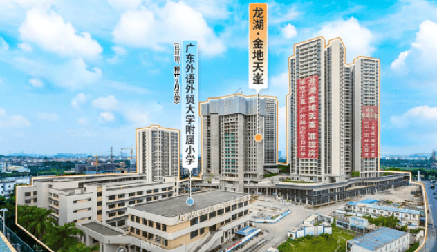 龙湖金地天峯位于广州市番禺区的核心位置——番禺广场板块,是集居住、购物、休闲、教育、出行等多功能于一体的45万㎡ TOD(Transit-Oriented Development)综合体。项目紧邻地铁3号线东延段傍江站,交通便捷,且拥有广州首座龙湖天街商业,为居民提供一站式的购物娱乐体验。小区还配套建设了广外附小学校,预计2024年9月开学,并优先招生本小区业主子女。该区域被视为旧区府板块的延续和升级版,由配套、教育、交通、医疗四大核心驱动的高品质迭代居住区。