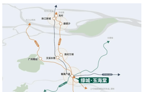 交通便利性是绿城玉海棠的一大亮点。家楼下便是番禺广场地铁站E出口,地铁3/18/22号线在此交汇,可轻松畅达白鹅潭、万博、琶洲、珠江新城等城市核心区域。附近规划中的17号线,更为未来交通增添潜力。