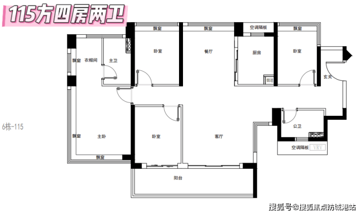 115㎡四房两厅两卫:南北对流,带入户玄关,低层北向朝客运站,高层朝马路,噪音问题需留意。